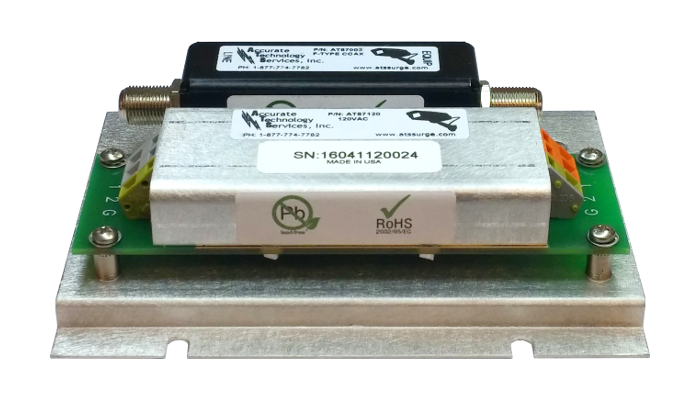The surface-mountable AT87120-2 module protects 120VAC powered, analog-signal security cameras