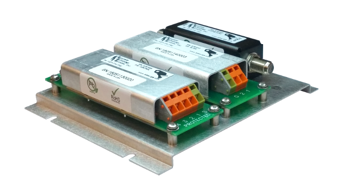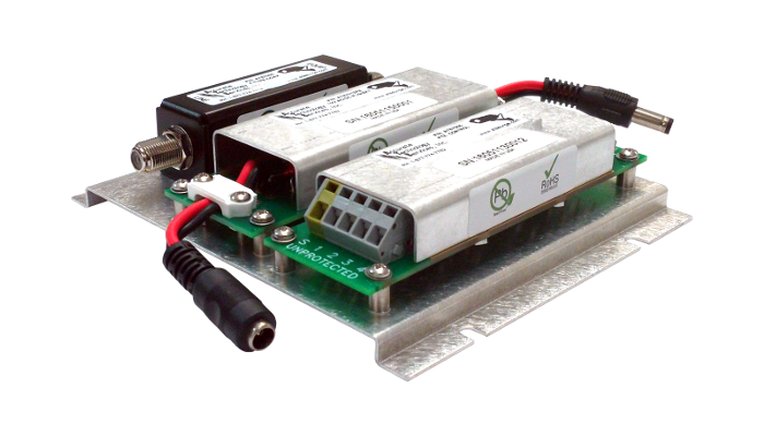 The AT87012-3X surge protection device offers solid protection for 12V AC and DC plug-to-socket powered cameras with PTZ control and analog A/V signals