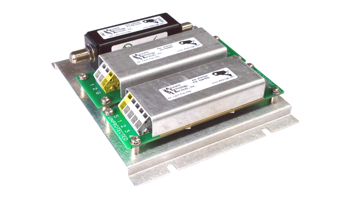 The AT87120-3 surge protection device offers fast and durable protection for 120V AC-powered cameras with PTZ control and analog A/V signals