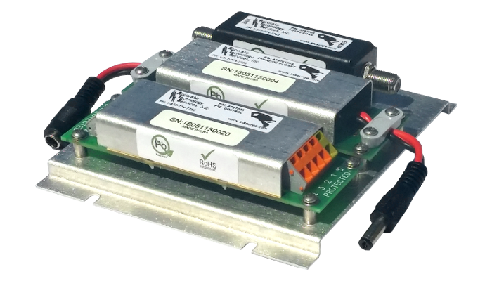 The AT87012-3X surge protection device offers solid protection for 12V AC and DC plug-to-socket powered cameras with PTZ control and analog A/V signals