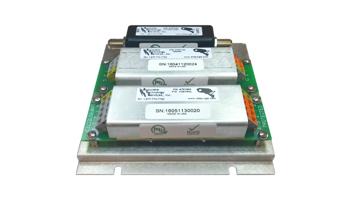 The AT87120-3 surge protection device offers fast and durable protection for 120V AC-powered cameras with PTZ control and analog A/V signals