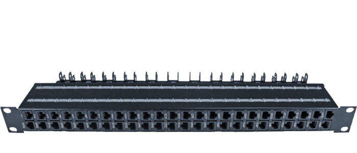 The NetGuard is a 1U-high rack mount frame with built-in cable organizers. It can be customized with up to 48 channels of Cat 6 PoE Plus surge protection modules, adjusting to fit medium to large camera installations while remaining compact in size