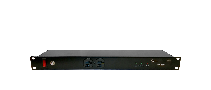 19" rack mounted power strip with durable surge protection, with two outlets on the front and ten in the back