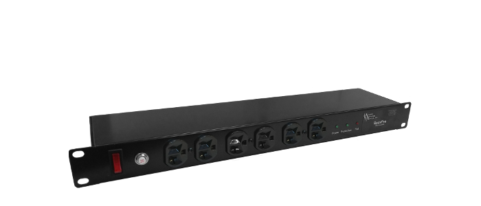 19" rack mounted power strip with durable surge protection, with six outlets in the front and six in the back