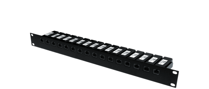 The rack mount 16-way frame is suitable for RJ45 type connections